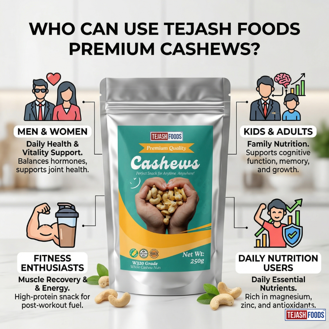 Yes, Tejash Foods Whole Cashew Nuts (Kaju) W320 | 100% Natural | No Preservatives | 250g is safe when used in recommended quantities. If you have medical conditions, please consult a healthcare professional.